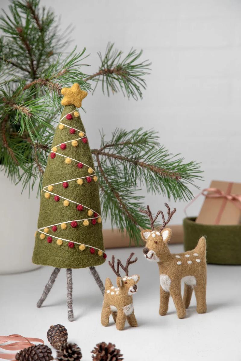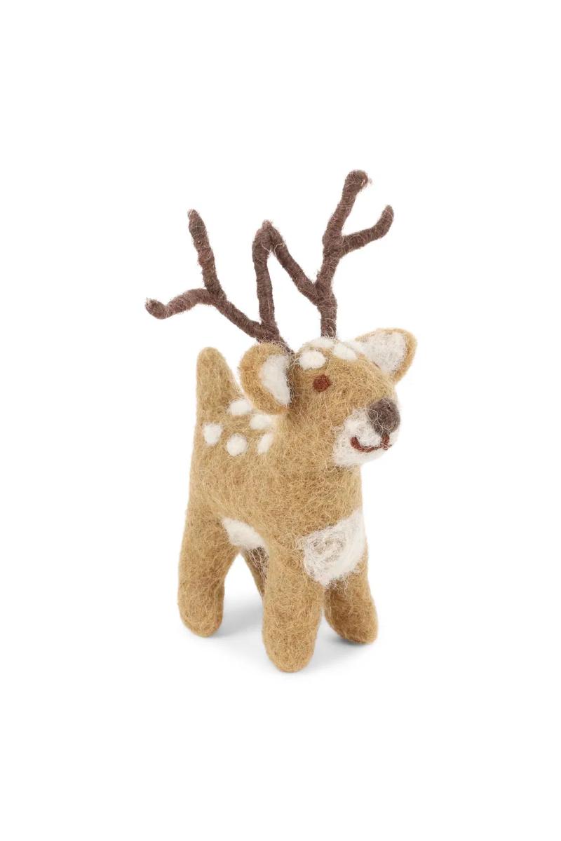 A small brown deer, standing gracefully as if it has wandered in from a snow-covered forest. A soft and elegant piece, handcrafted to bring a touch of nature indoors